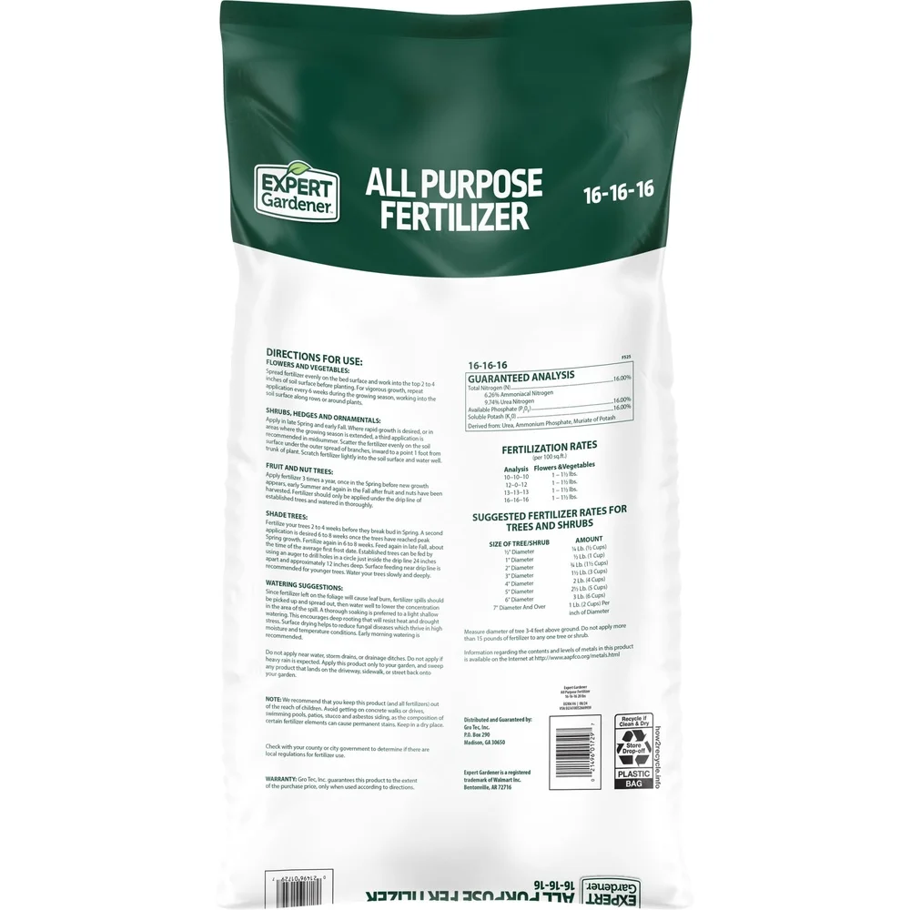 All Purpose Plant Food Fertilizer 16-16-16 Balanced NPK Trees Shrubs Flowers Vegetable Gardens 20 lb Weather Resistant 2000 sq