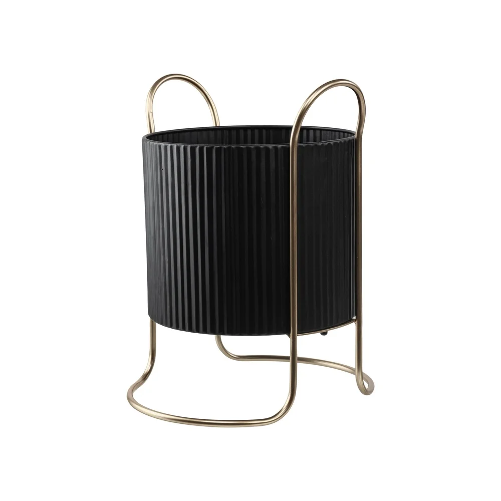 Black Metal Planter with Gold Stand Indoor Outdoor Drainage Durable Round Pot Suitable Foliage Simple Minimalist Design