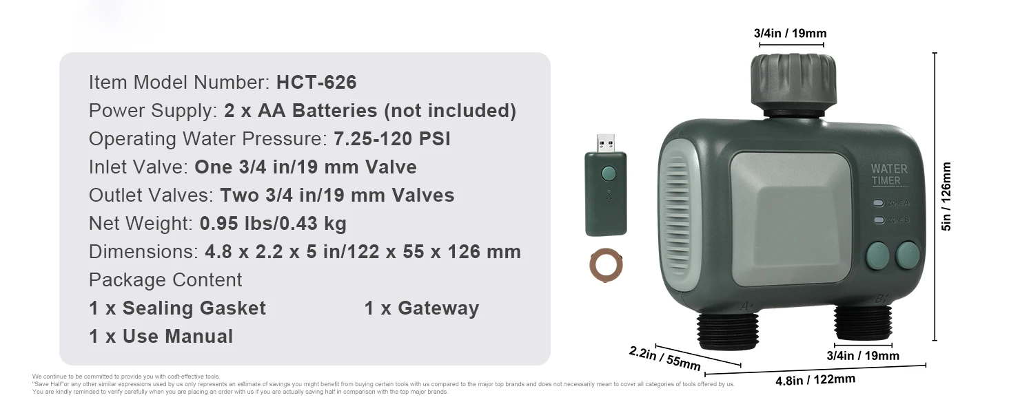 Smart Water Timer with WiFi or Bluetooth Remote Control
